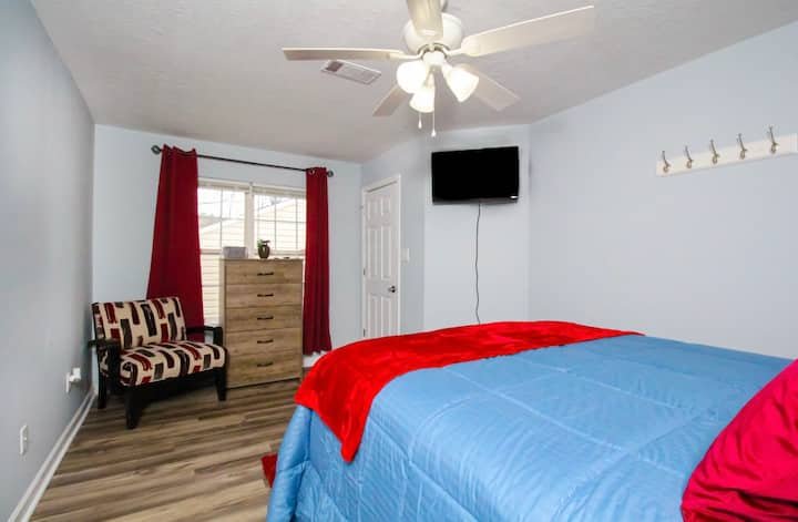 Wake up refreshed in this comfy and cozy room with a Queen bed, WiFi, Netflix, and free parking near Downtown!